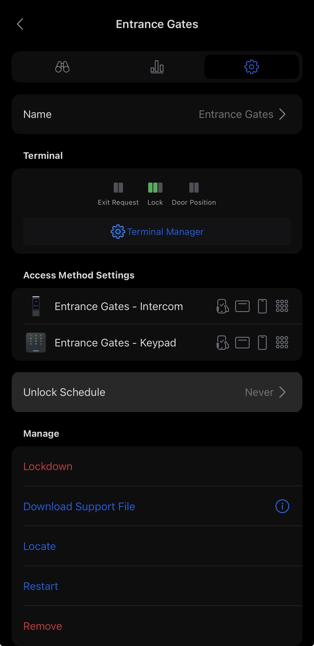 If you then proceed to the cog icon in the top-right corner, you will be presented with a more technical configuration view of the system. From here, we are only interested in the “Unlock Schedule” option. Select this.
